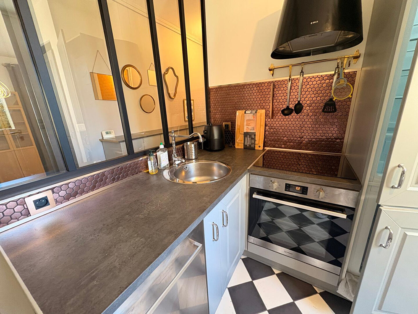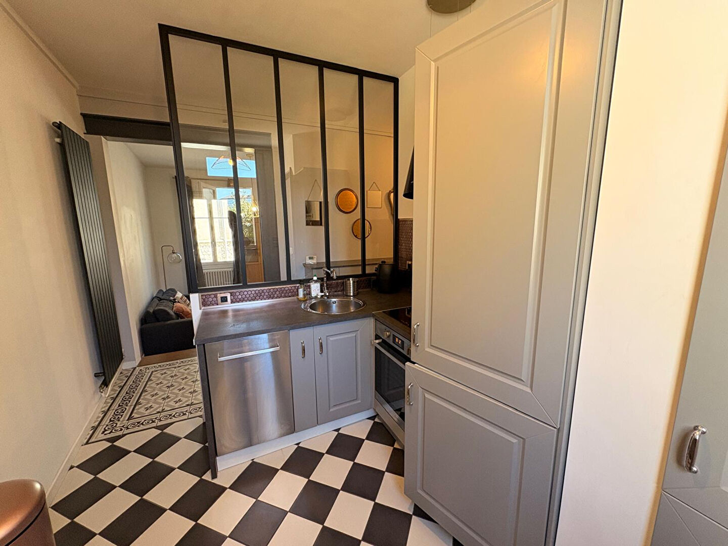 Il se compose d’une entrée avec couloir, d’une salle d’eau, de WC séparés, d’une cuisine séparée aménagée et équipée (donnant sur une petite cour partagée sans vis-à-vis), d’un cellier attenant, d’un séjour lumineux, ainsi que d’une chambre avec dressing aménagé.
