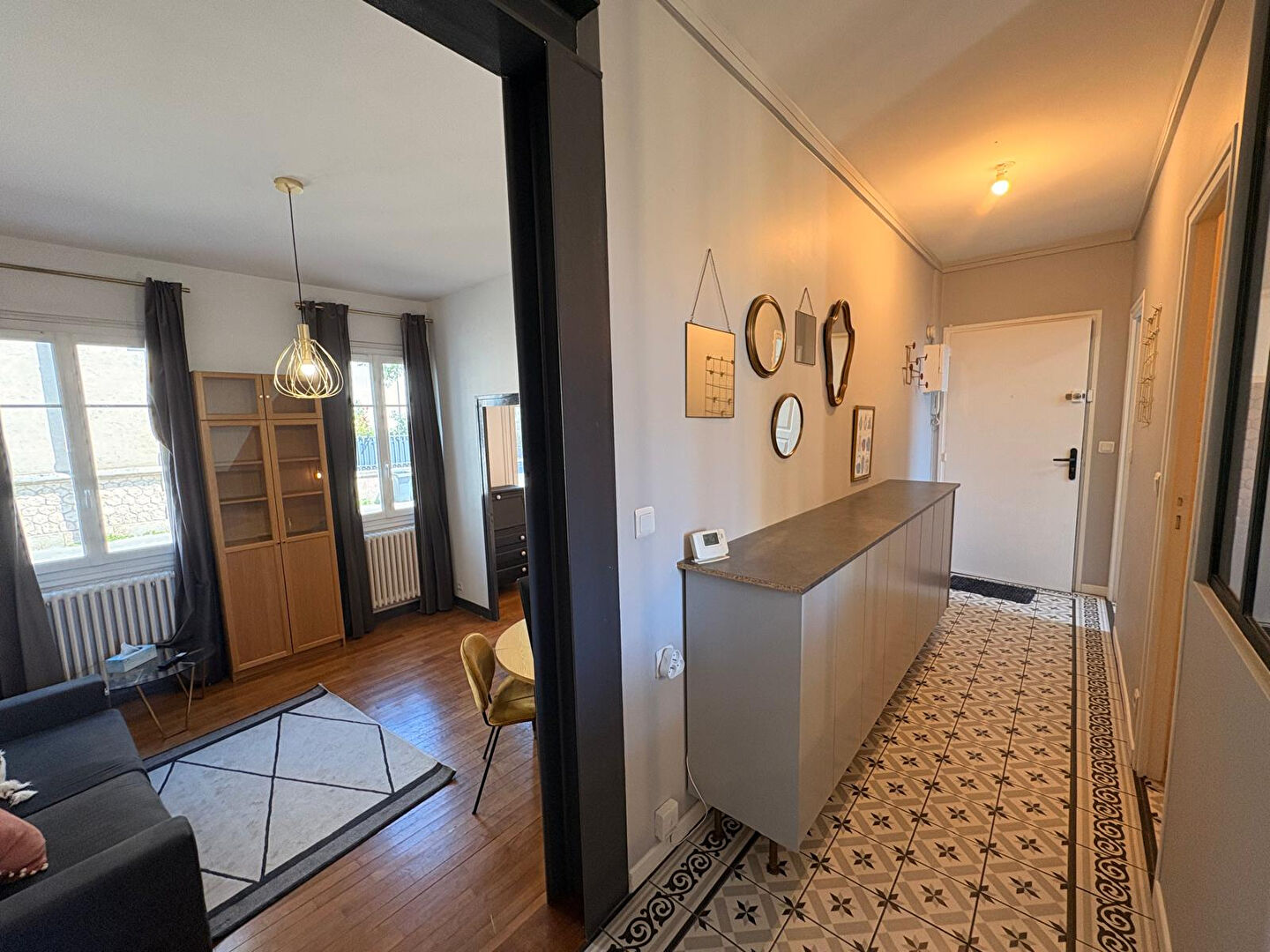 Situé dans un quartier dynamique et bien desservi, à proximité immédiate des commerces, des transports en commun et des écoles, ce charmant appartement meublé avec goût de type 2 vous séduira par son agencement fonctionnel et sa décoration soignée.
