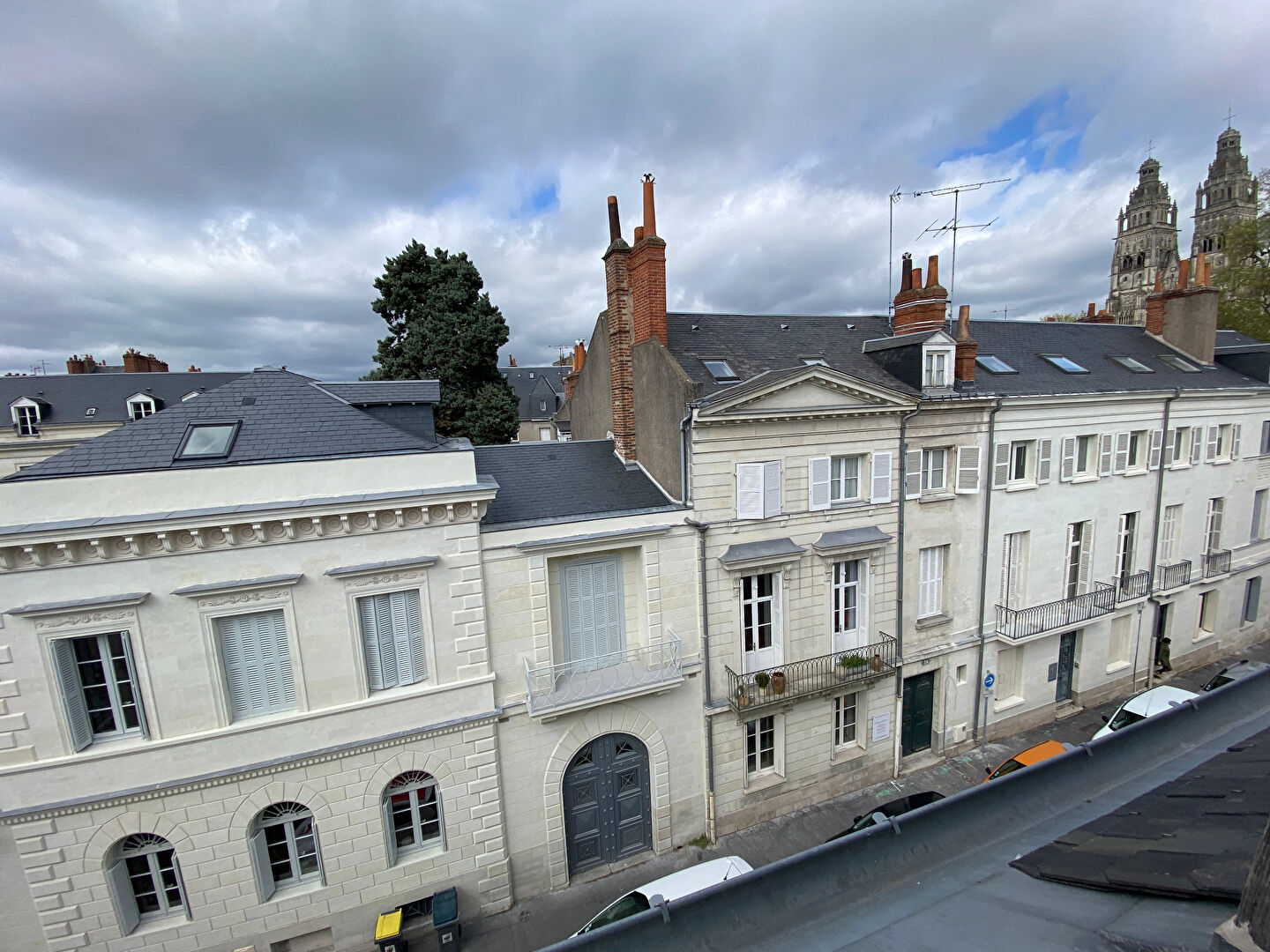 A deux pas du Château de Tours et de la Cathédrale, studio de charme avec poutres apparentes, lumineux et composé d’une kitchenette, une salle d’eau avec wc et d’une belle vue sur la cathédrale.