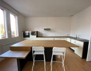 Une pièce de vie aménagée confortablement avec un coin cuisine ouverte, aménagée et entièrement équipée. Une chambre séparé avec un lit double, et des rangements. Une salle de bains avec WC termine le logement idéal pour n’avoir qu’a déposer ses valise pour l’année.